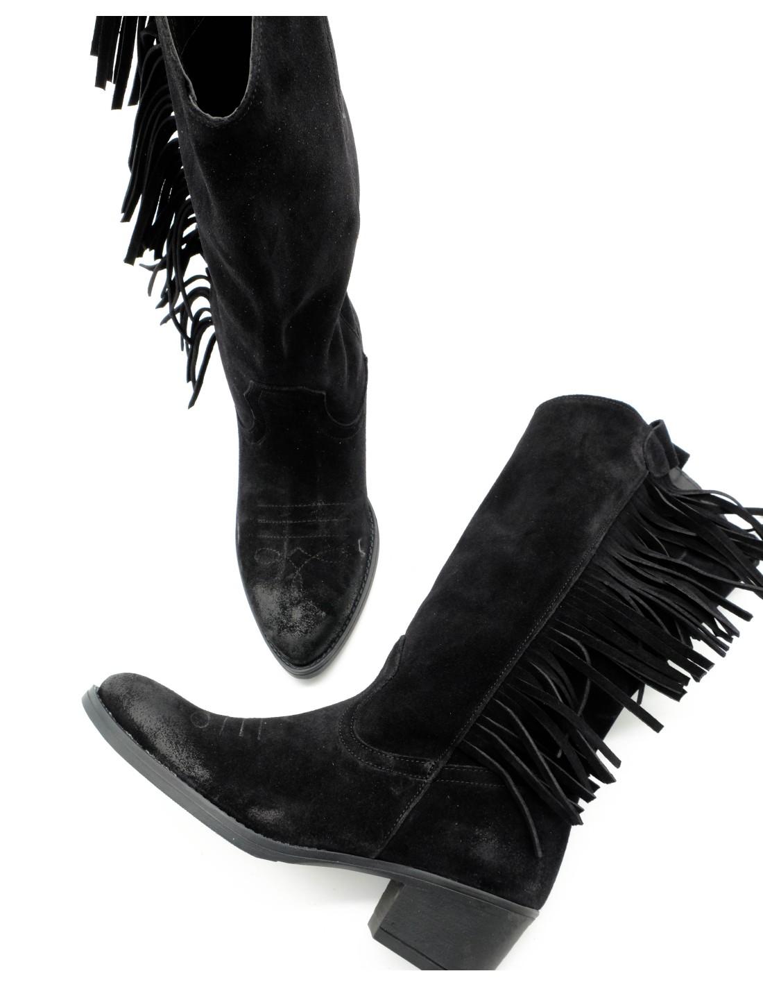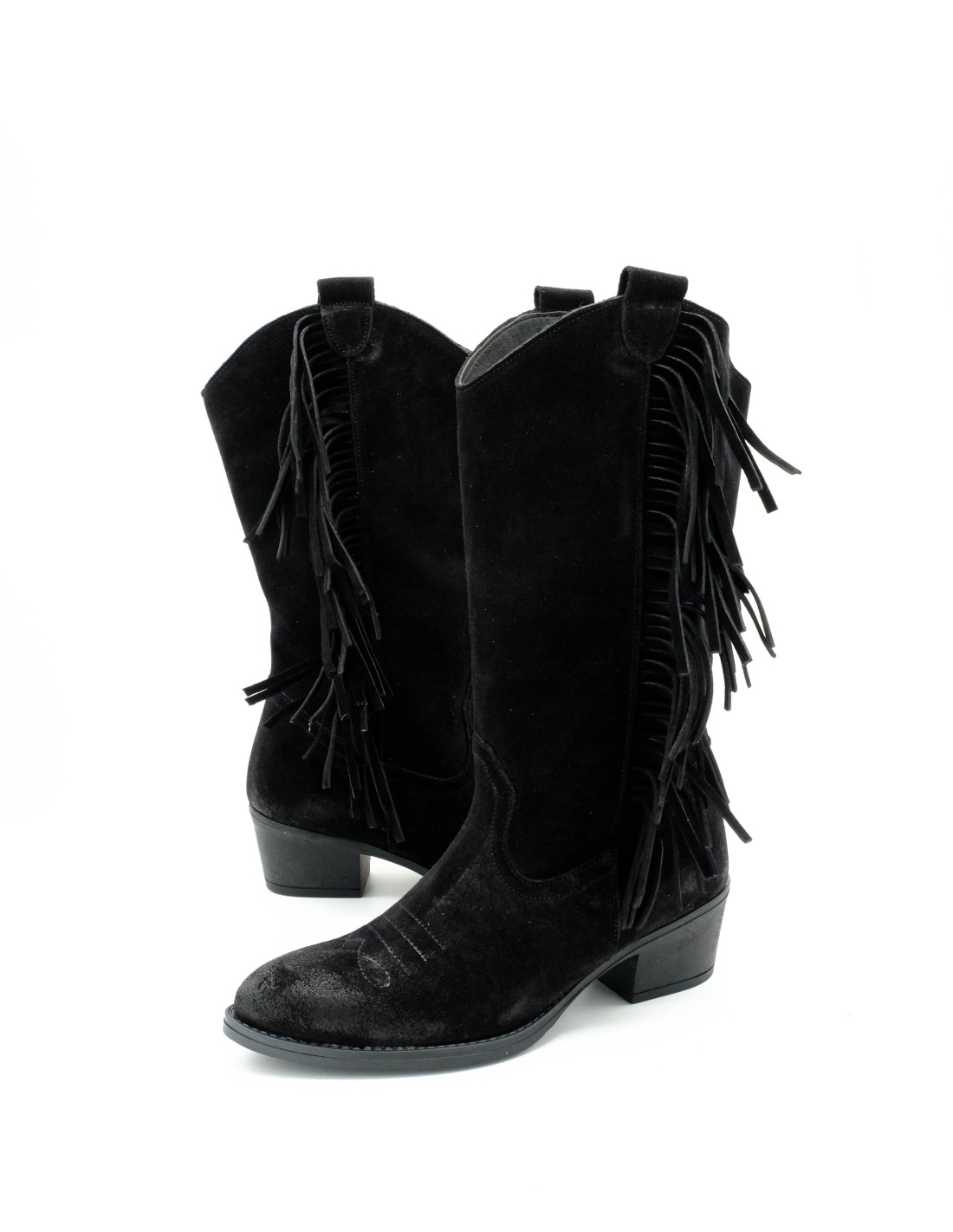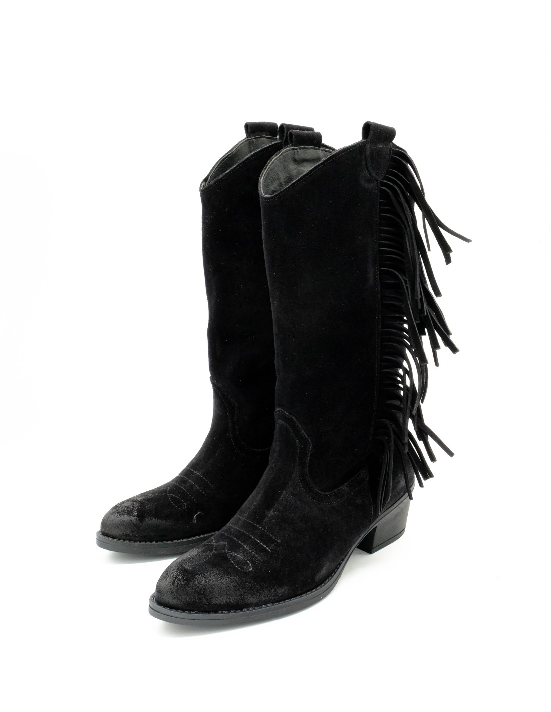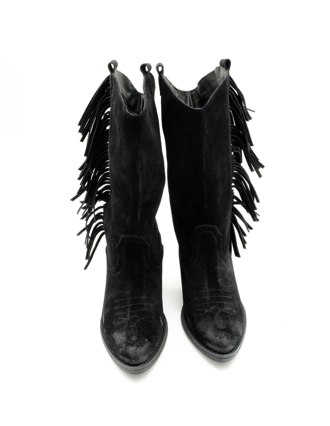 Stivali texani da donna realizzati in morbido camoscio nero con pregiata lavorazione artigianale.
