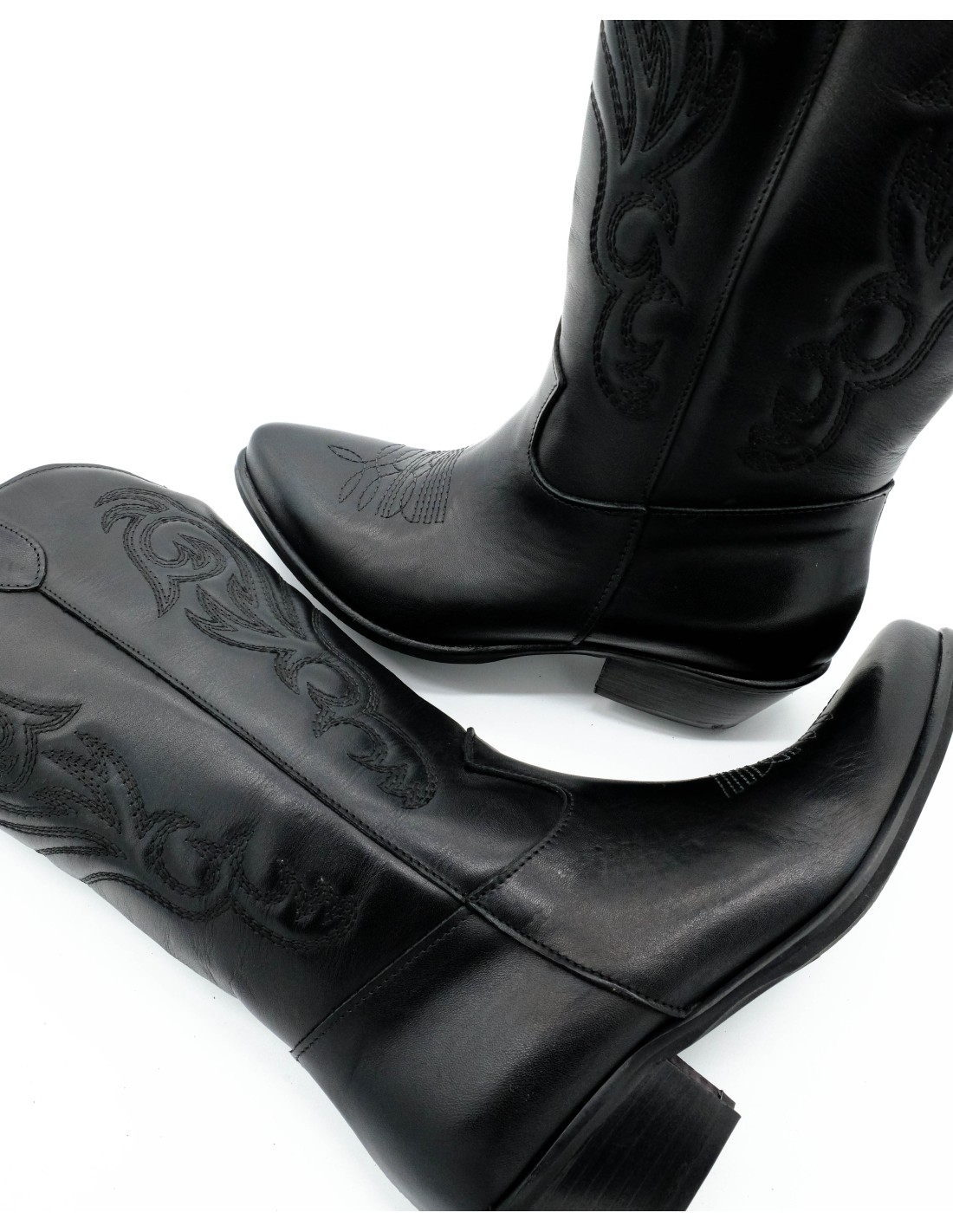 Stivali texani da donna realizzati artigianalmente in morbida pelle nera di alta qualità.