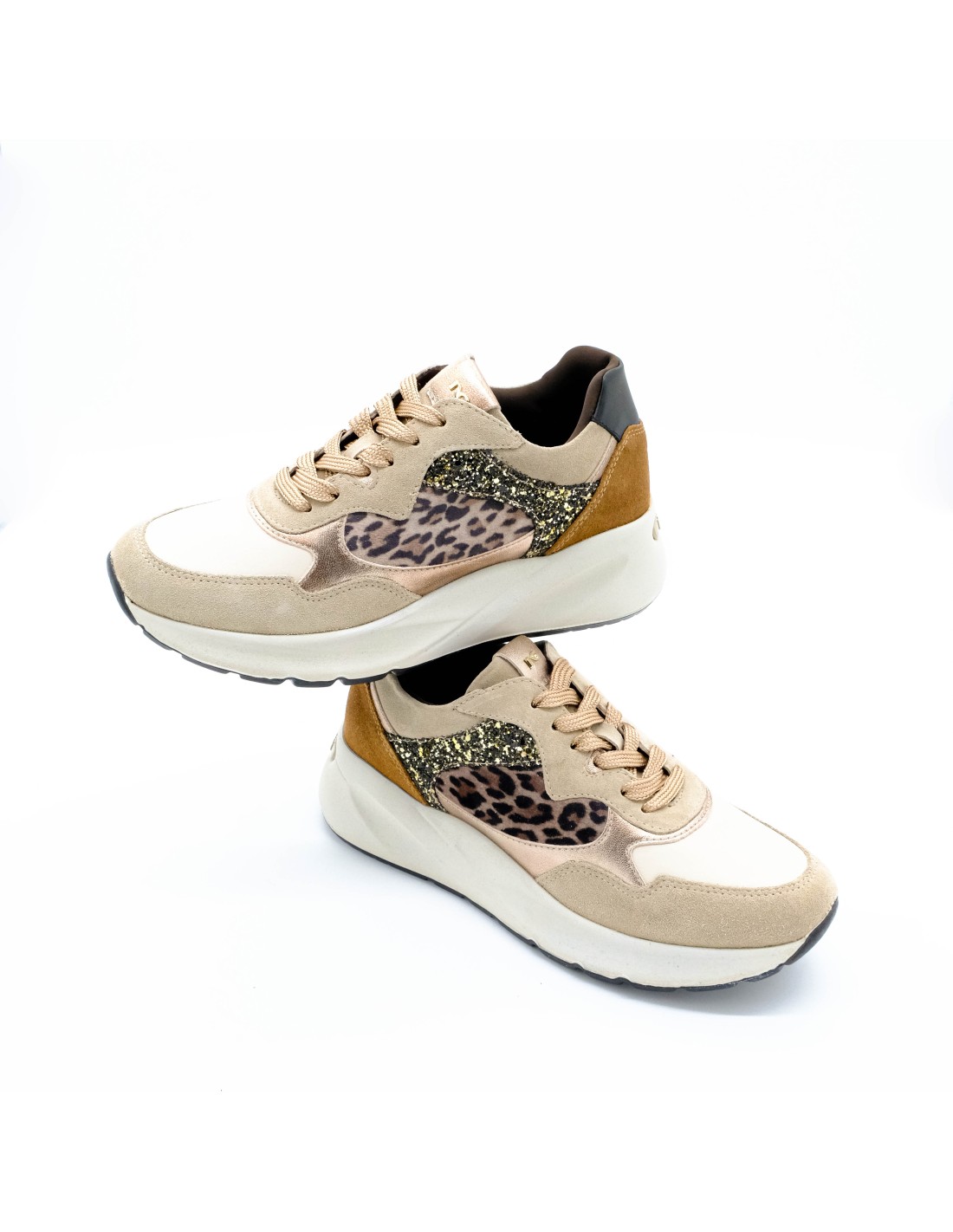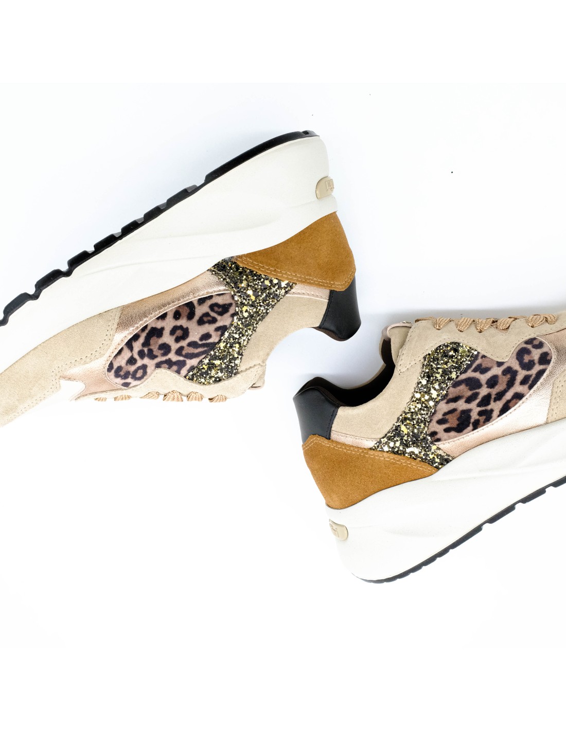 La tomaia è arricchita da inserti glitterati e dettagli animalier, per un mix di sportività e stile contemporaneo.