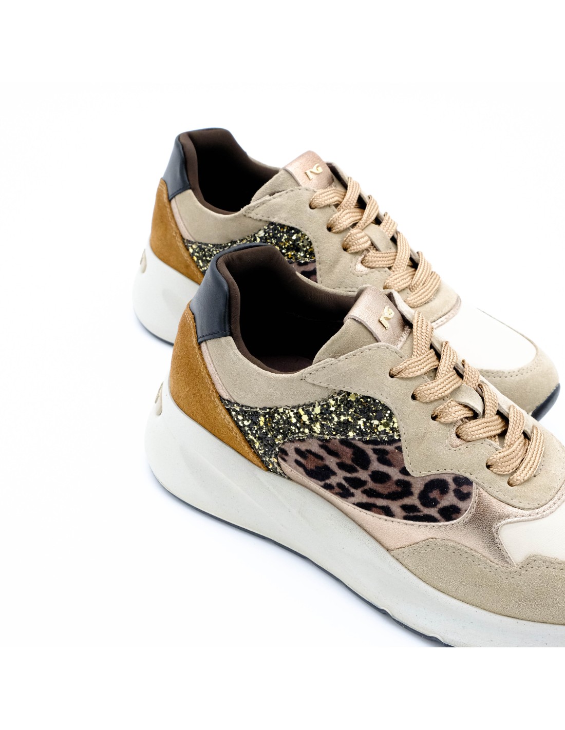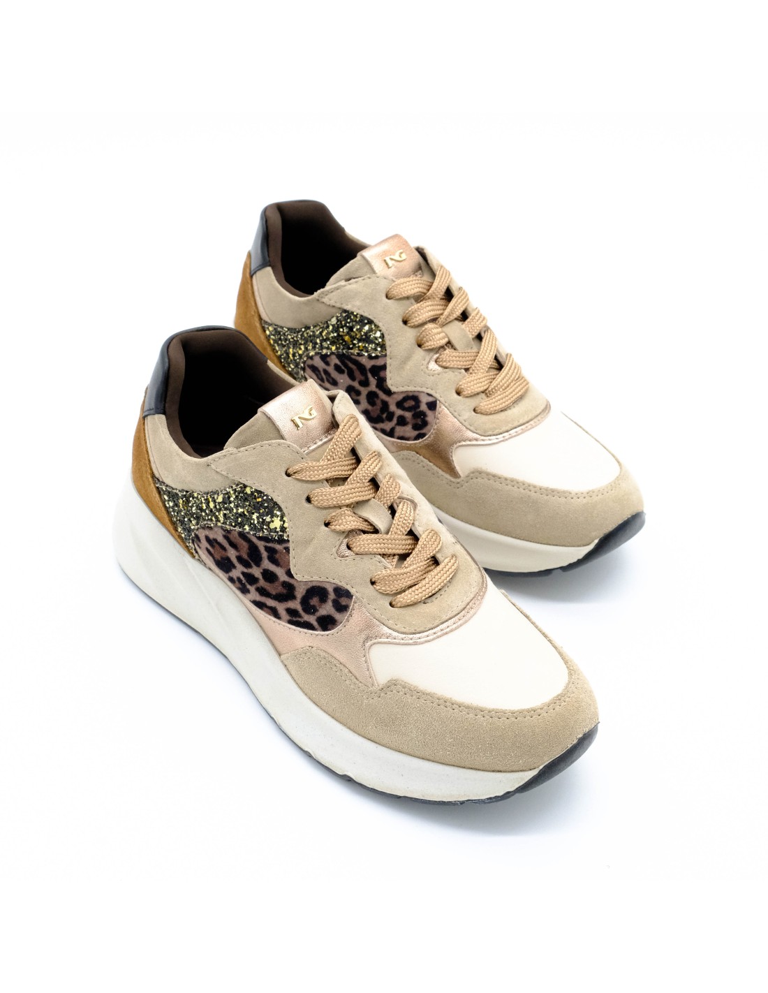 Running NeroGiardini da donna realizzata in morbida pelle e camoscio beige, un modello che unisce comfort e design glamour.