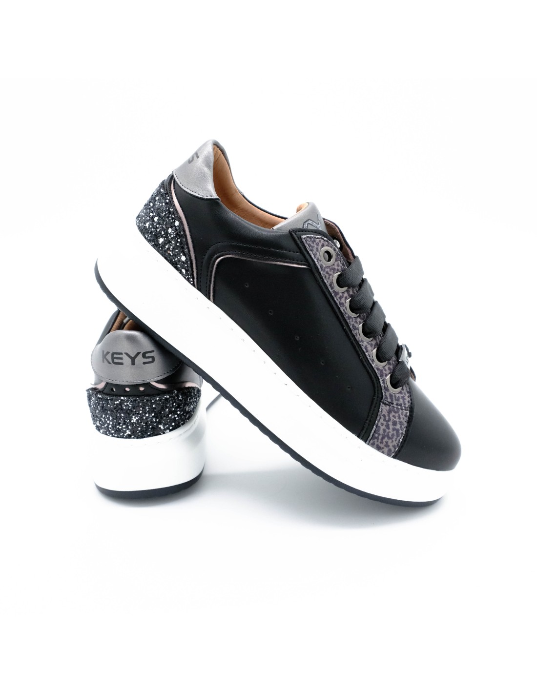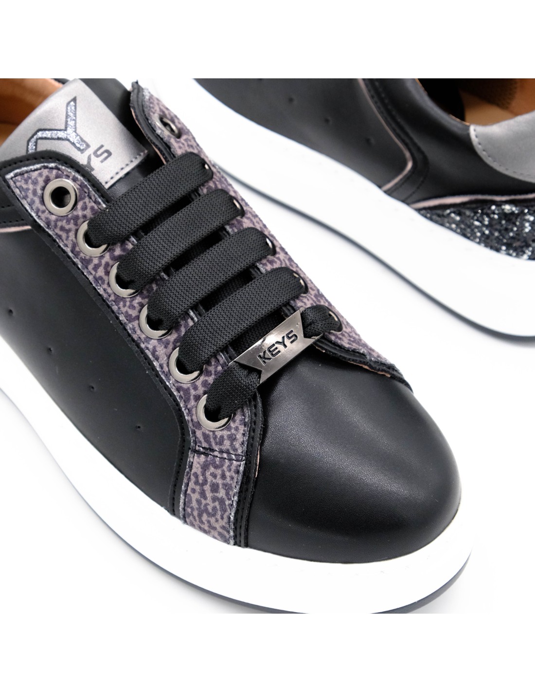 Le sneaker Keys nere con dettagli animalier sono quelle scarpe che al primo sguardo ti fanno dire: “wow, ci stanno con tutto!”.
