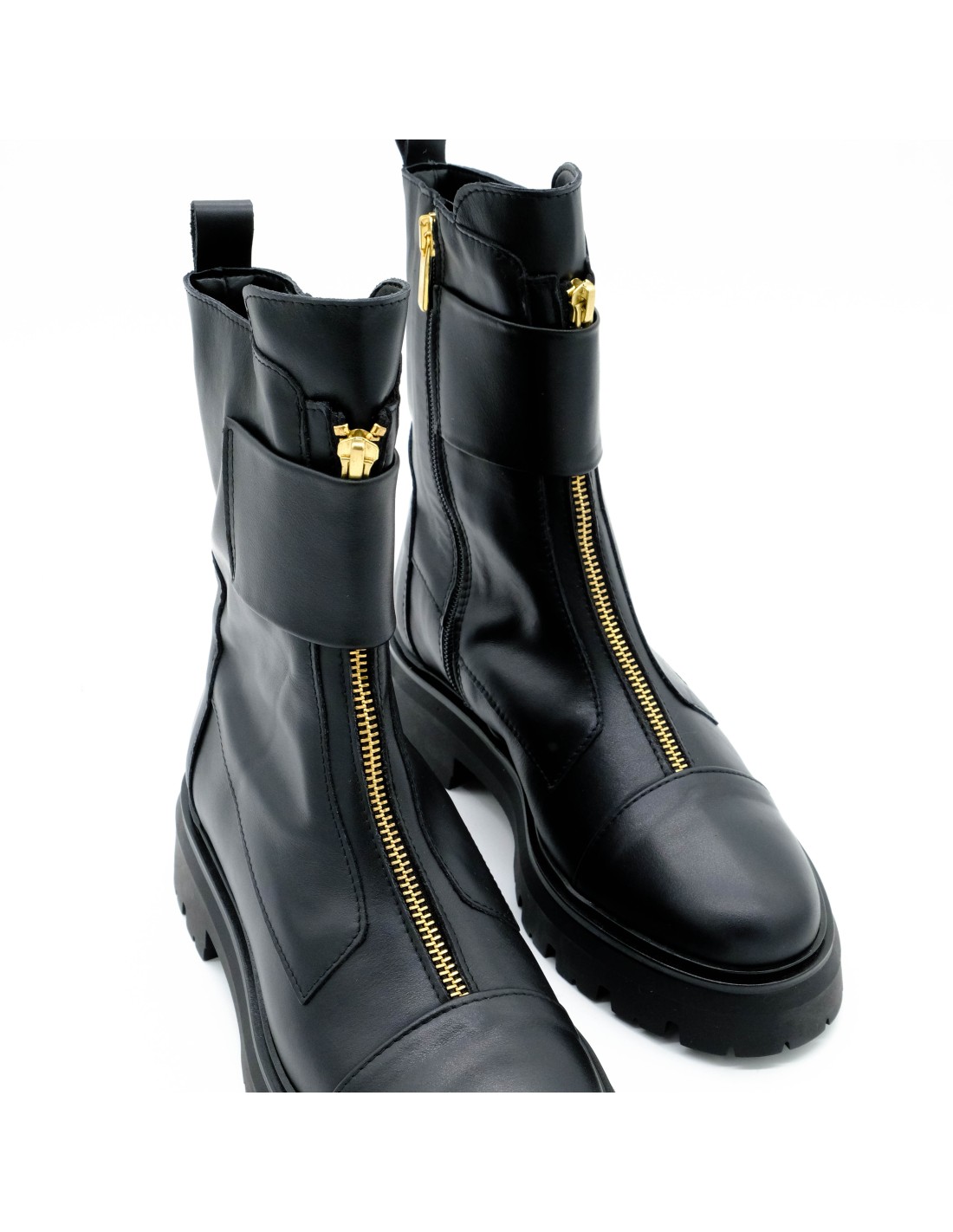 Stivaletto Émia donna in morbida pelle nera, dal design grintoso e contemporaneo.